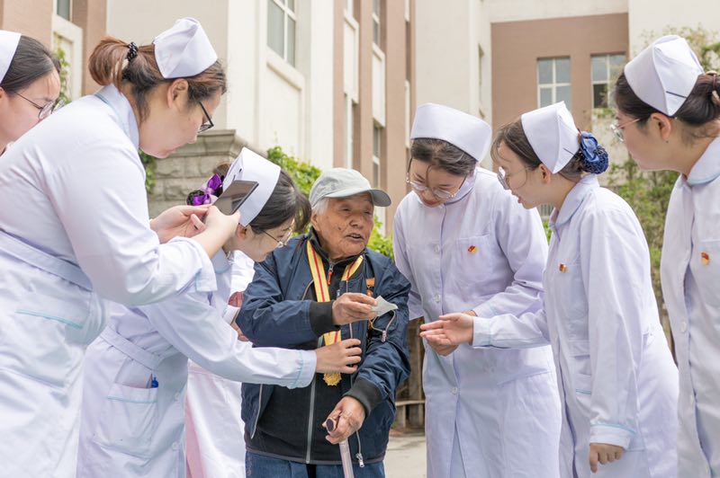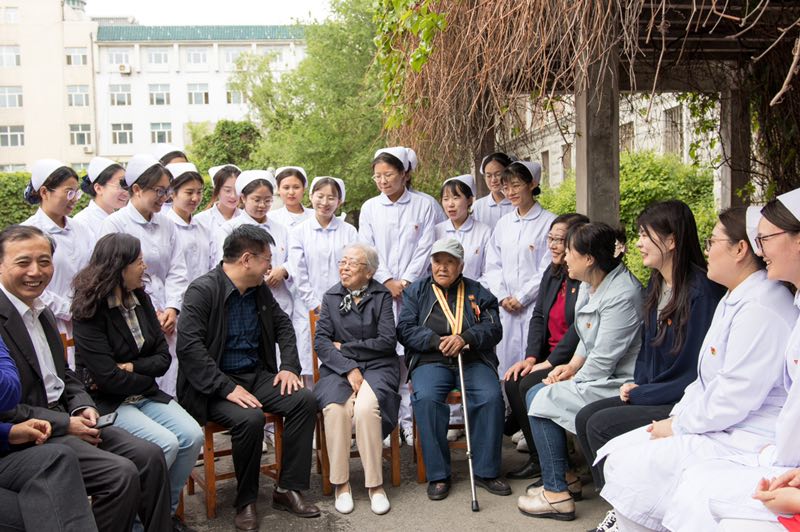 5月13日上午,党支部共建活动的启动仪式暨“新老党员手牵手,传承时代新使命”抗日战争、解放战争老护士讲述白医历史活动在新葡萄88805官网南丁格尔像前举行。我们邀请到了新民校区离休第四党支部的老党员、89岁高龄的牛慧英同志和87岁高龄的张丽华同志来到新葡萄88805官网与本科学生第一党支部全体党员及部分积极分子代表交流座谈。离退休党委书记陈彦强、离休第四党支部书记傅菁林、新葡萄88805官网党委书记席海涛、院长陈立、副书记兼副院长葛宗梅、本科生第一党支部书记李亚琴等出席此次活动。新葡萄88805官网学生党员向两位护理前辈敬献鲜花,祝贺前辈母亲节、护士节快乐!