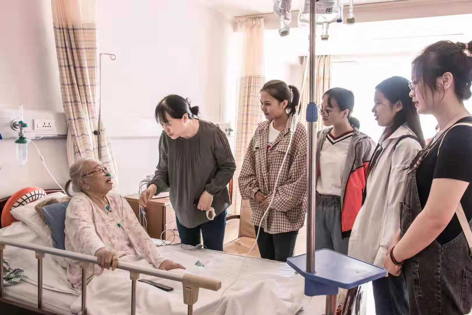 9月29日上午,在新葡萄88805官网学生第一党支部书记李亚琴老师的带领下,支部成员们一同看望了88岁、因病住院的离休老党员张老师。得知大家来看望自己,正处在康复期的张老师十分激动和喜悦。李亚琴老师与张老师亲切交谈,她握着张老师的手询问了她的身体状况,嘱咐她要保重身体,享受离休的幸福生活。听到这些暖心的话语,张老师流出了感动的泪水。同学们亲切地和张老师交流互动,表达自己对老党员的尊敬与钦佩。