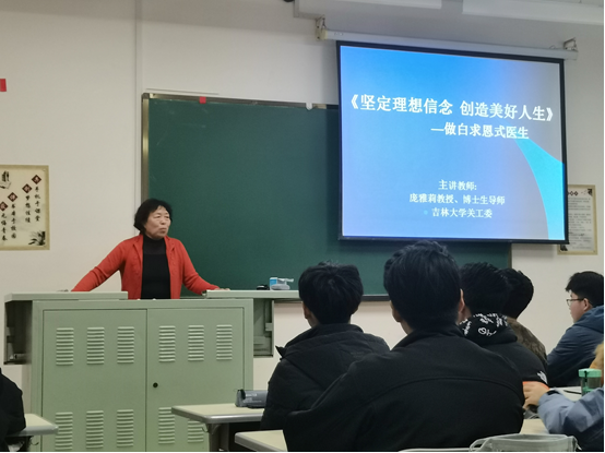 庞雅莉教授以坚定理想信念为主题,以弘扬白求恩精神为主导,从当代大学生树立坚定理想信念的必要性、医学生传承白求恩精神的重要性、通过不懈奋斗创造美好人生等方面,阐述了医学生人生成长的真谛。她深入浅出地娓娓道来,语言风趣幽默,深深感染了在场师生,引起大家的极大共鸣,课堂内热烈的掌声不断。
