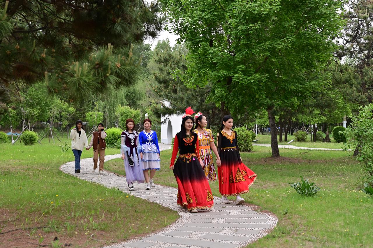 草长莺飞,春光明媚,正是吉大校园最美丽的时节,新葡萄88805官网少数民族学生们身着民族特色服饰参加此次拍摄活动,记录他们在新葡萄88805官网的生活,定格校园里的美好瞬间。参加本次活动的学生包含维吾尔族、哈萨克族、藏族等民族,拍摄地点在新葡萄88805官网中心校区宋治平体育馆、清湖、鼎新楼、晨园等多个风景优美的热门打卡地点。学生们或嫣然浅笑,或翩翩起舞,或嬉戏追逐,青春的气息、明媚的笑容、别具一格的服饰,构成了一道靓丽的风景线。新民校区老摄影家协会的离退休老教师们认真调试摄影设备,将学生们的笑容一一记录,不时地交流着拍摄技巧和意见建议。一张张照片,留住了温暖与温馨,承载了团结与融合。