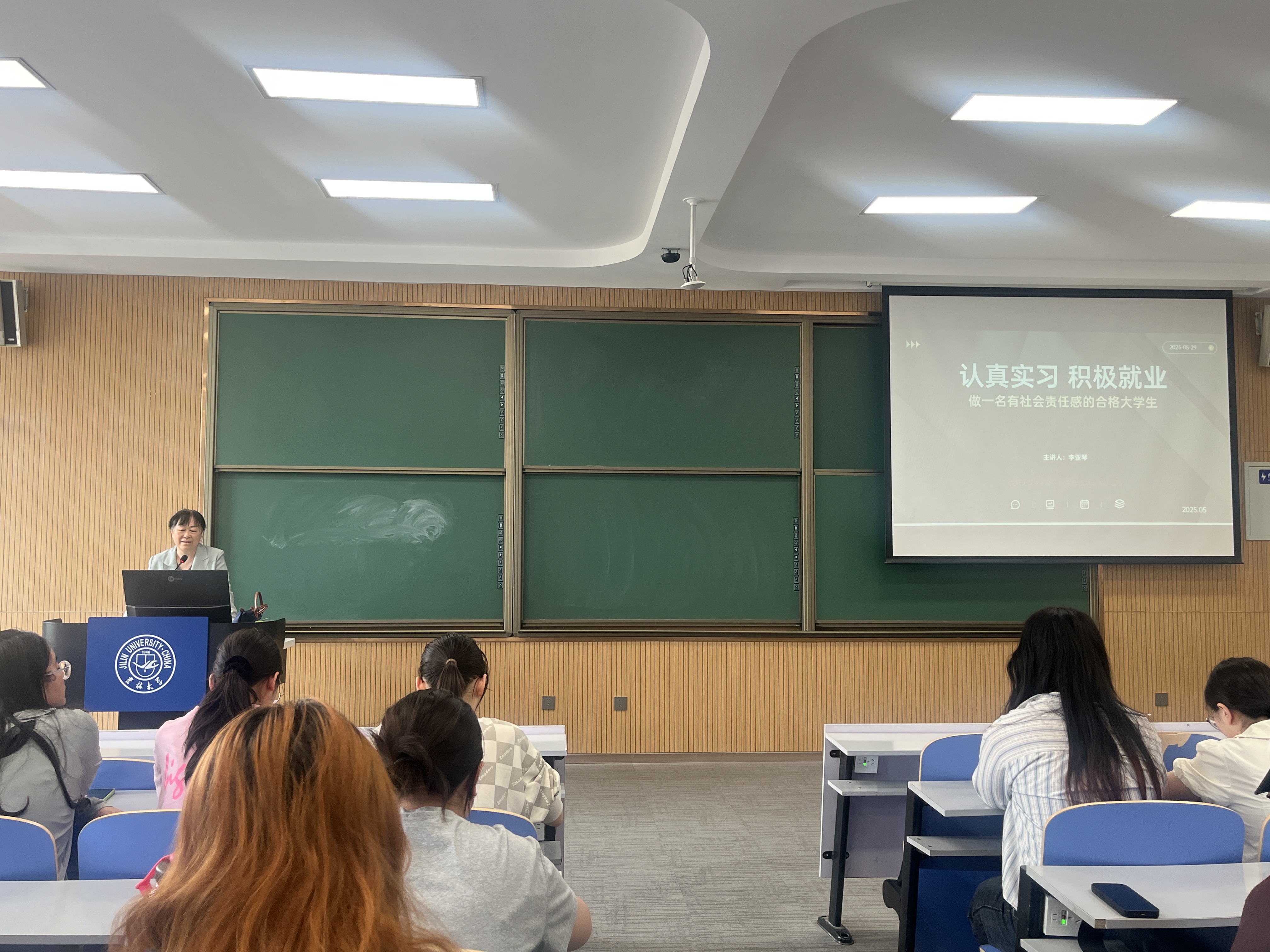 活动伊始,刘宇飞老师向同学们介绍本次讲座特邀老师李亚琴老师,李老师于1986年7月毕业留校,在新葡萄88805官网从事一线辅导员工作37年,有多年为学生讲授职业生涯规划和就业指导课经验,培养出一大批优秀的毕业生。本次讲座,李亚琴老师以“认真实习,积极就业,做一名有社会责任感的合格大学生”为主题,为同学们在实习与就业方面提供了深入引导。她首先结合自身职业生涯经历,着重强调临床实习是学生锤炼专业技能、积累就业经验的关键阶段,将为未来工作奠定坚实基础。李老师提醒同学们在实习期间需积极应对学习环境变化带来的挑战,妥善处理与带教老师、其他临床老师以及与患者的关系。她通过讲述一系列真实的案例,引导同学们加强职业修养、做好职业保护、防范职业风险、坚守专业精神;并分享了自己对“求实创新,励志图强”校训的思考与体悟,号召大家在工作与学习中时刻谨记“慎独、敦行、仁爱、奉献”的院训,弘扬毫不利己、专门利人的精神,以对患者极端负责、对同志极端热忱、对技术精益求精的态度,争做白求恩精神的传承者。在就业指导方面,李亚琴老师围绕了解就业形势与政策、做好求职择业准备、掌握就业方法与技巧等维度,讲解了往届毕业生在保研考研、考公、出国留学及临床就业等发展方向中的生动实例,为同学们提供了系统而全面的就业指导与建议。李老师从就业不仅与学生个人发展密切相关,同时关乎学校声誉、社会稳定的高度出发,鼓励同学们积极进行职业规划,要勇于克服求职过程中遇到的困难与挫折,善用社会支持系统,积极投身就业,为社会发展贡献应有力量。同时,李亚琴老师分享了对习近平总书记提出的新质生产力的思考与理解,鼓励同学们应积极关注国家时政热点、主动了解就业政策等内容,新时代要积极抓住时代机遇,迎接新的挑战,与时俱进,开拓进取。