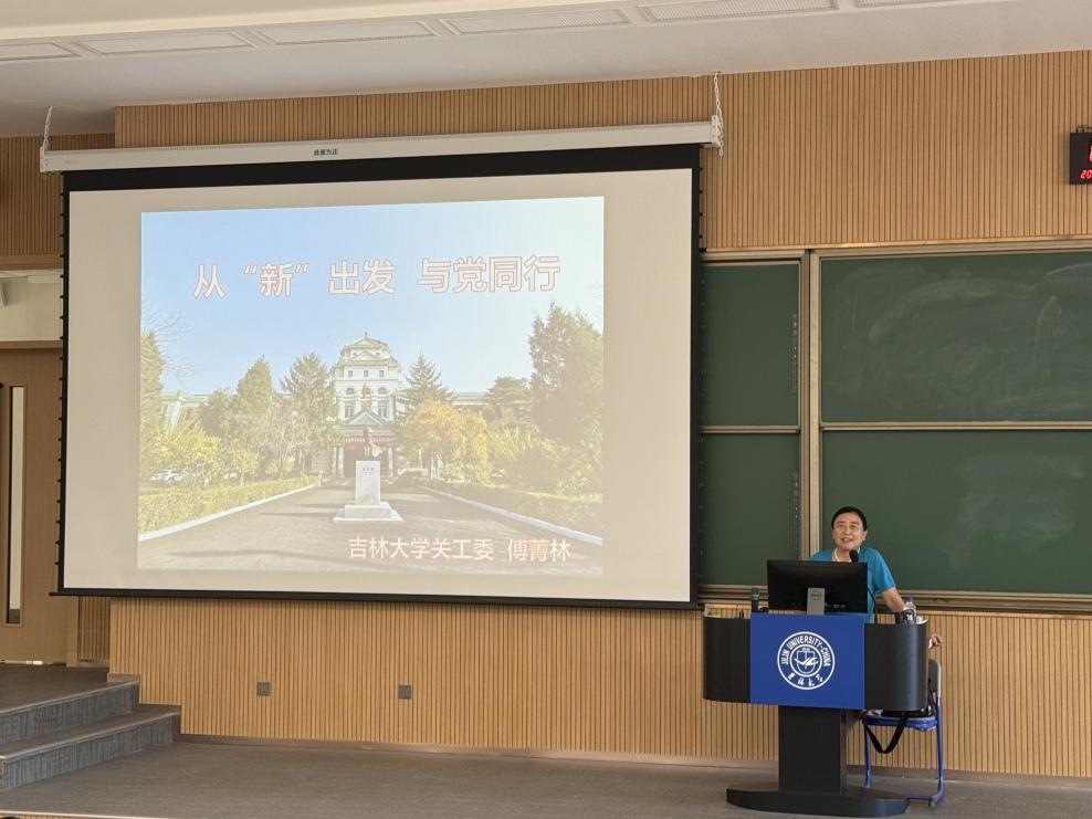 为使2025级新生深刻理解党的历史足迹,坚定理想信念,明确人生道路,迈入人生新征程,2025年9月18日上午,新葡萄88805官网关工委副主任傅菁林教授在李四光楼第一阶梯教室为新葡萄88805官网全体2025级本科生带来了一堂以“从‘新’出发,与党同行”为主题的思政课。此次活动系新葡萄88805官网关工委策划组织的银龄护苗计划系列活动之一。