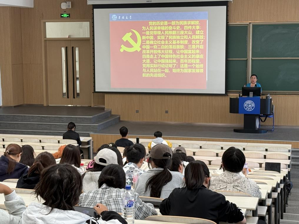 课上,傅老师首先祝贺大家踏入大学校园,开启新的人生篇章。接着,她以一个问题引起同学们的好奇心:我们为什么要“与党同行”?她强调,与党同行从来都不只是一句口号,而是把个人的小我融入祖国的大我,让青春的价值在时代的浪潮中闪闪发光。她站在党的历史角度,系统地讲解了党的历史、入党的意义,以及如何用自己微薄的力量去追寻“与党同行”这个宏大的命题。傅老师指出,作为新中国的青年,同学们要靠近党组织,筑牢理想信念之基,增强政治敏锐性,厚植家国情怀,勇担时代责任。傅教授还以自己当年考大学、写入党申请书等故事向同学们生动演绎了青年学子应该具有的觉悟与担当。